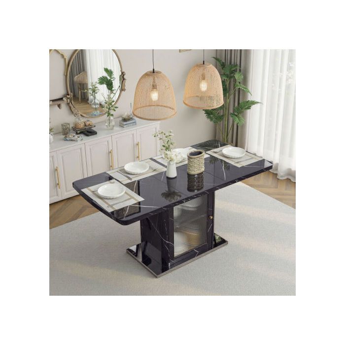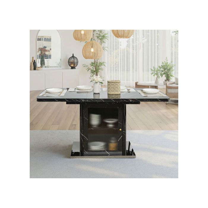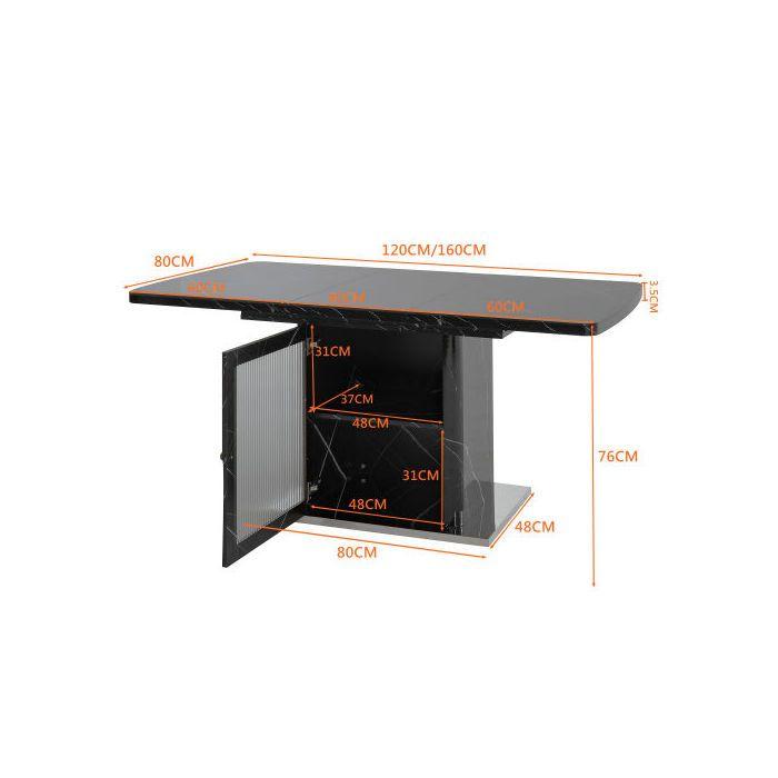 Table à manger extensible - MUVOE - Rectangulaire - Plateau en marbre noir - Rangement intégré - 120-160 cm
