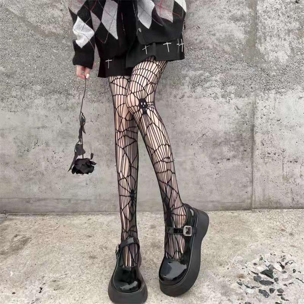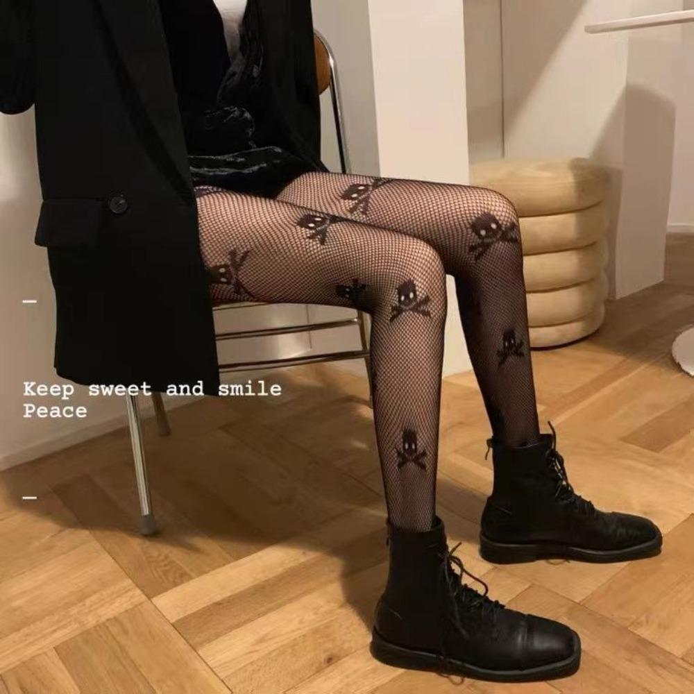Леггинсы сетка летучая мышь череп длинные чулки трусы новые тонкие колготки женские