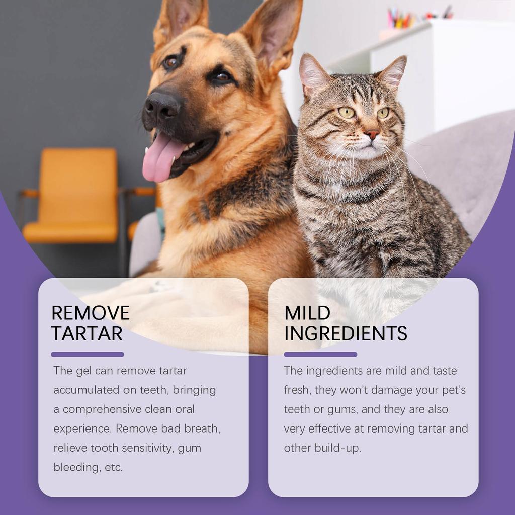 Он может обеспечить точный уход при распространенных проблемах полости рта у питомцев.. После длительного употребления на зубах питомца склонен накапливаться зубной камень.. Этот гель может глубоко очищать промежутки между зубами, удалять скопление зубного камня и предотвращать его образование.. При неприятном запахе изо рта, вызванном проблемами полости рта у домашних животных, он может улучшить его коренным образом, так что у питомцев больше не будет проблемы неприятного запаха изо рта, когда они находятся рядом со своими владельцами.. В то же время, это также может облегчить такие проблемы, как чувствительность зубов и кровоточивость десен, позволяя питомцам чувствовать себя более комфортно во время еды и повышая их ощущение счастья в жизни.