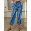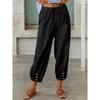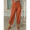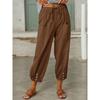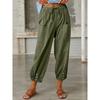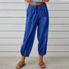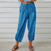 Осень Женские Хлопково-Льняные Эластичная Талия Высокая Посадка Широкие Штанины Свободные Прямые Брюки Однотонные Женские Брюки