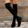 Празднуйте Сапоги выше колена Женские Осенне-зимние Короткие Плюшевые Длинные Сапоги Женские Черные Флоковые Низкий Каблук Высокие до Бедра Ботас