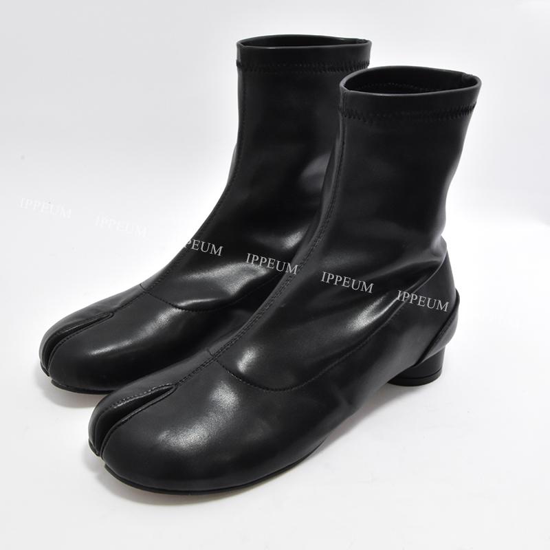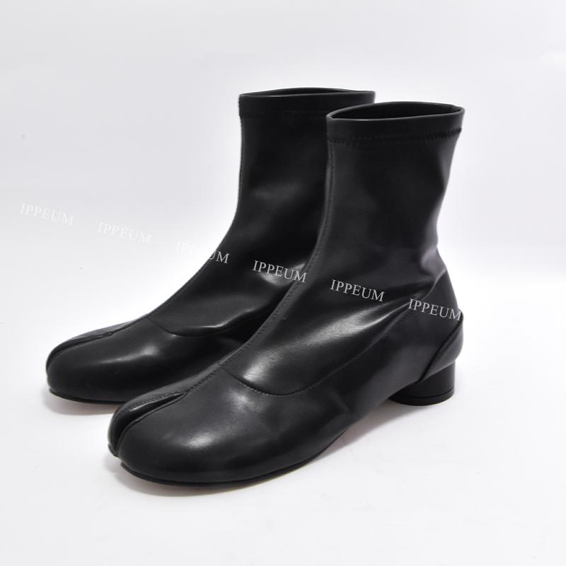 IPPEUM Таби Ботинки для Женщин Черная Искусственная Кожа Большой Размер 44 Ботильоны Разделенный Палец Таби Ботас