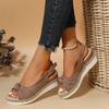 Женские сандалии на танкетке с открытым носком, летние легкие повседневные сандалии на платформе, женские нескользящие эспадрильи, обувь-гладиатор, большие размеры