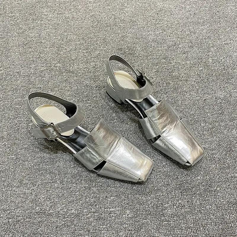 Летние полые женские сандалии, серебряные массивные туфли-лодочки, роскошный дизайн, гладиаторы с ремешком и пряжкой, римские туфли-гладиаторы, Zapatos De Mujer