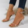 Сексуальные сандалии из прозрачного ПВХ с квадратным носком Женские 2025 Квадратный высокий каблук Туфли с ремешком на щиколотке Женские Туфли для вечеринки с задним ремешком