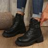 Ретро Ботильоны на толстой подошве коричневые женские 2025 зима металлическая пряжка украшение ботинки-комбаты большого размера женская обувь на платформе