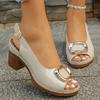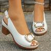 Элегантные женские туфли-лодочки с открытым носком Весна Лето 2025 Лакированная кожа Ремешок сзади Высокий каблук Обувь Женская Большой размер Металлическая пряжка Сандалии