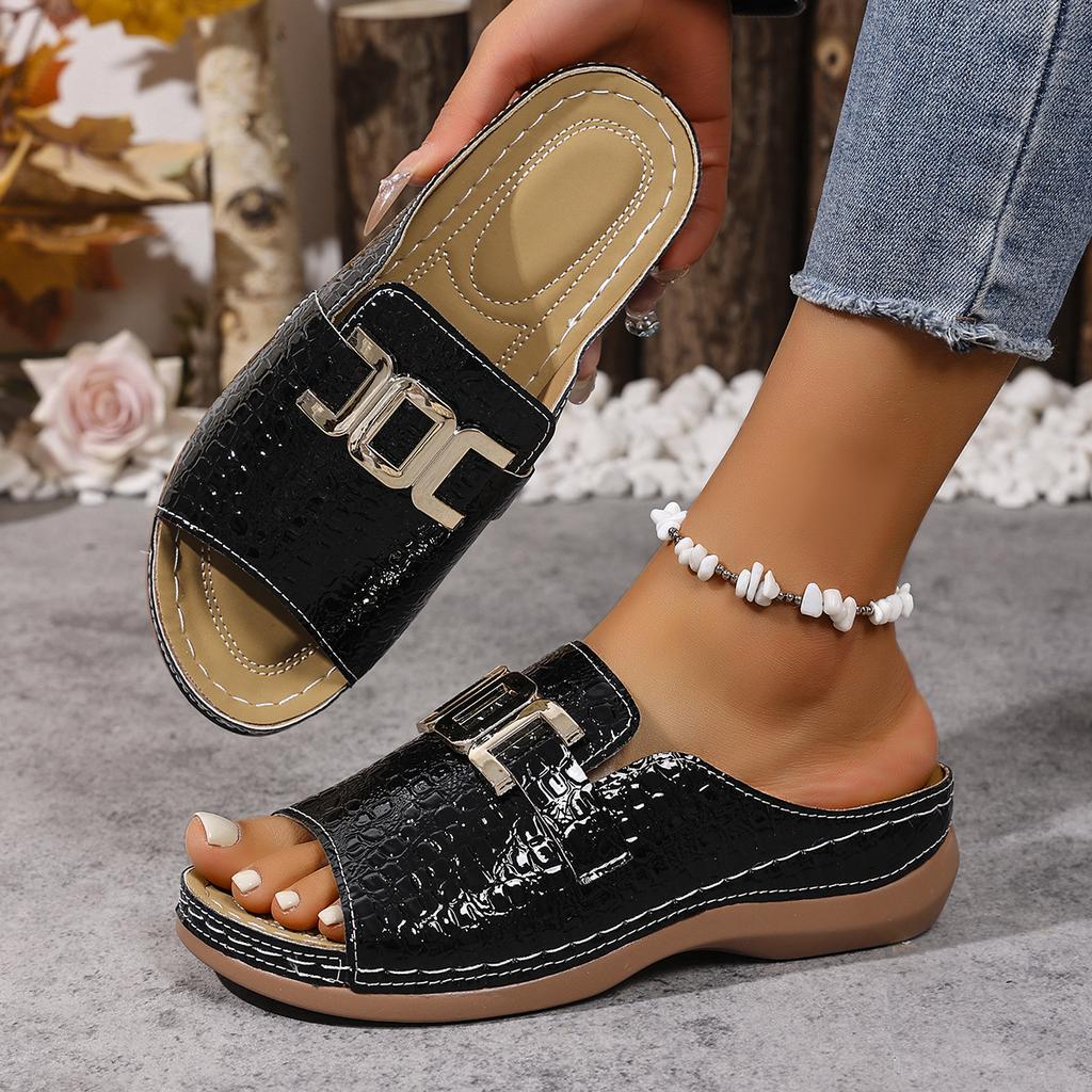 Женские шлепанцы на платформе Удобные туфли с круглым носком Женские слипоны Модные повседневные шлепанцы Уличные римские сандалии-клинья Слайды Женские