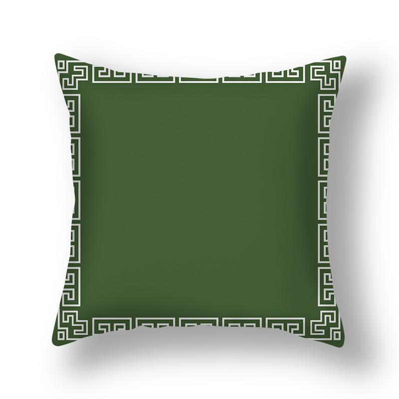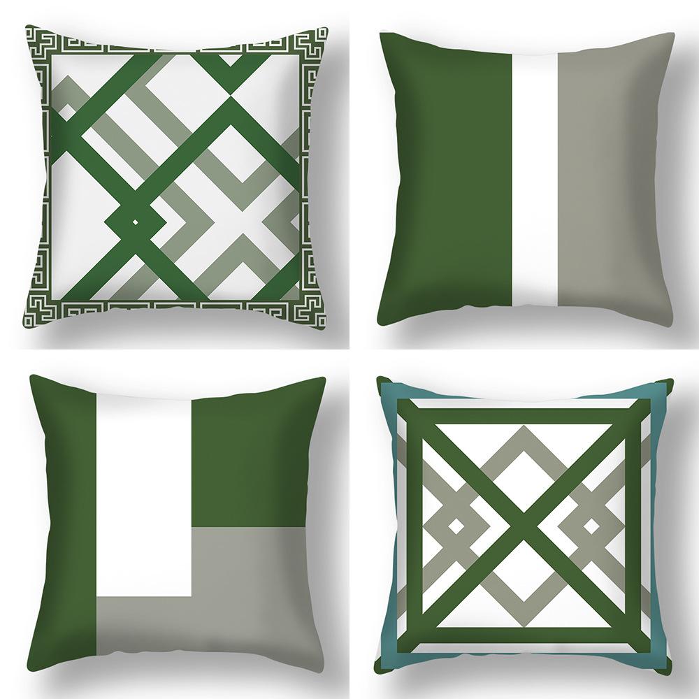 Light Luxury Green Short Plush Sofa Pillow Dark Green Geometric Pattern Pillow Bedside Cushion Cushion Pillow Cover