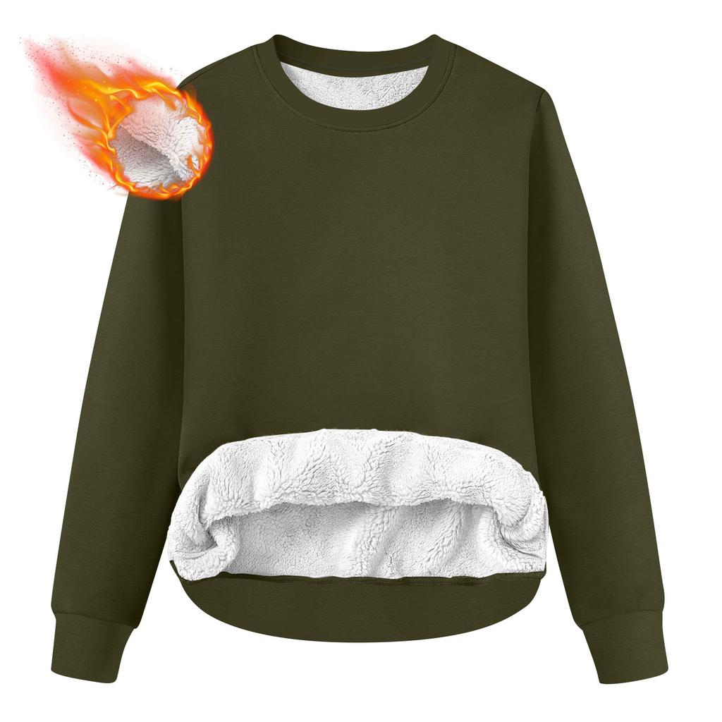 Женская повседневная модная зимняя однотонная плюшевая толстовка с круглым вырезом