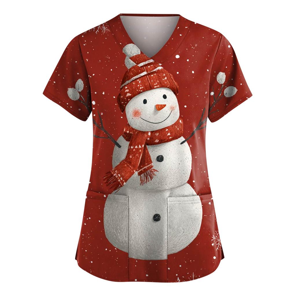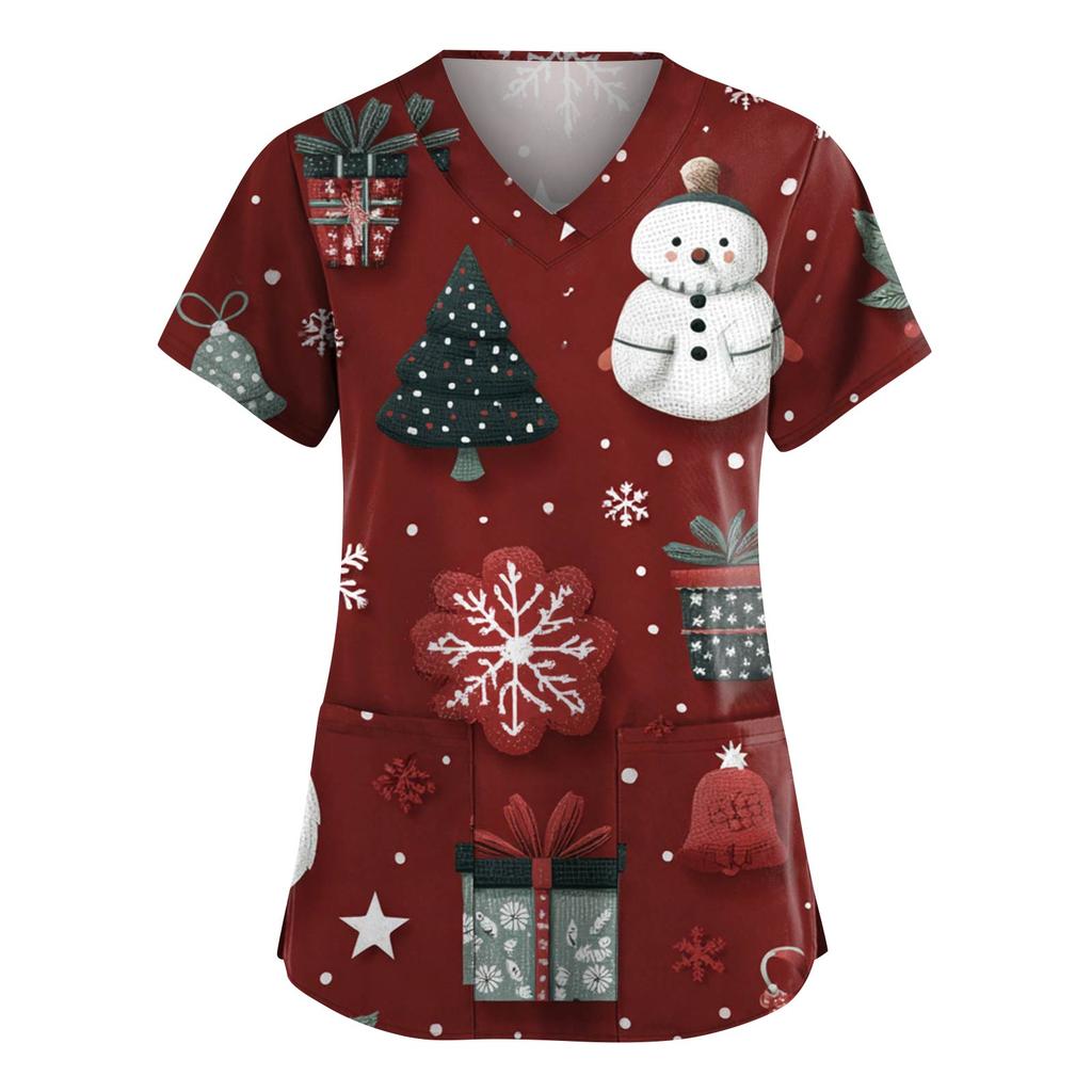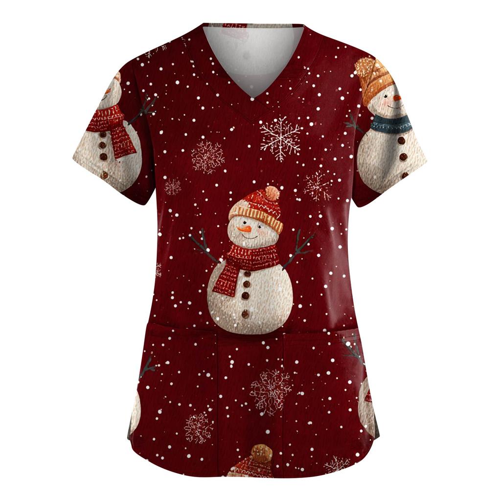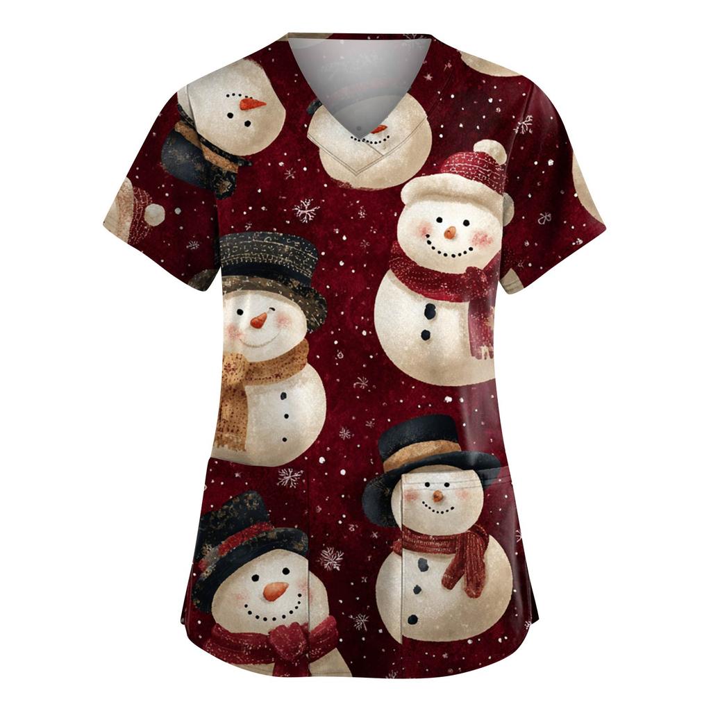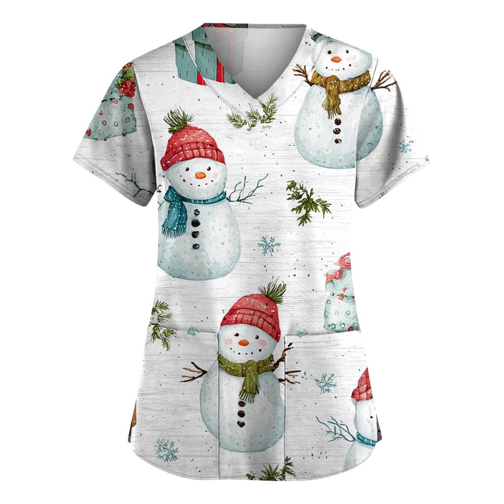 Женская модная рабочая одежда с V-образным вырезом и короткими рукавами, с карманами, топ с рождественским принтом, униформа для сиделки
