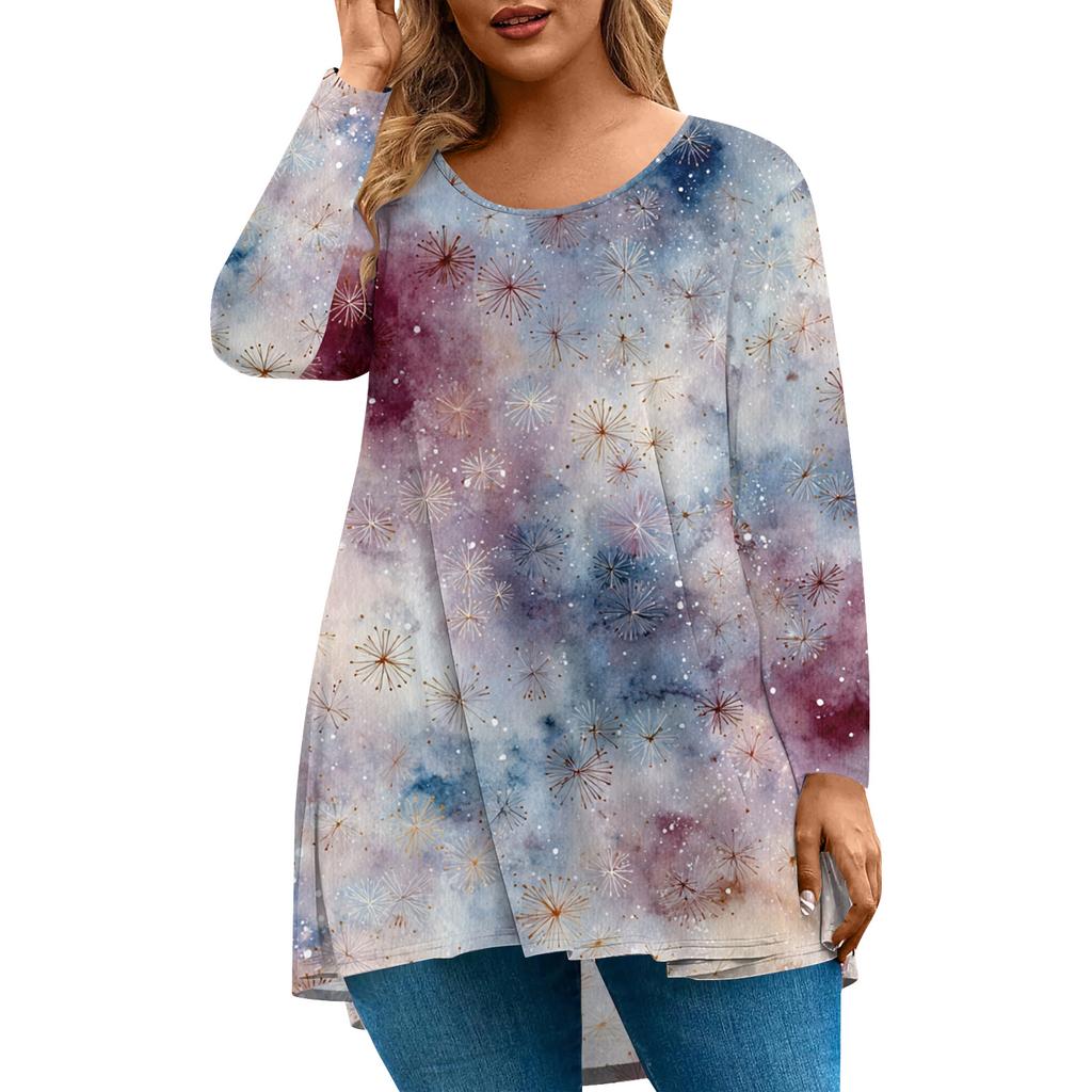 Женский модный повседневный топ с длинным рукавом большого размера с принтом, топ большого размера с цветочным принтом