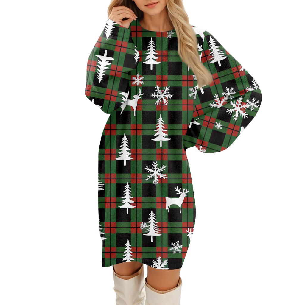 Женские повседневные плюшевые платья с круглым вырезом и длинным рукавом