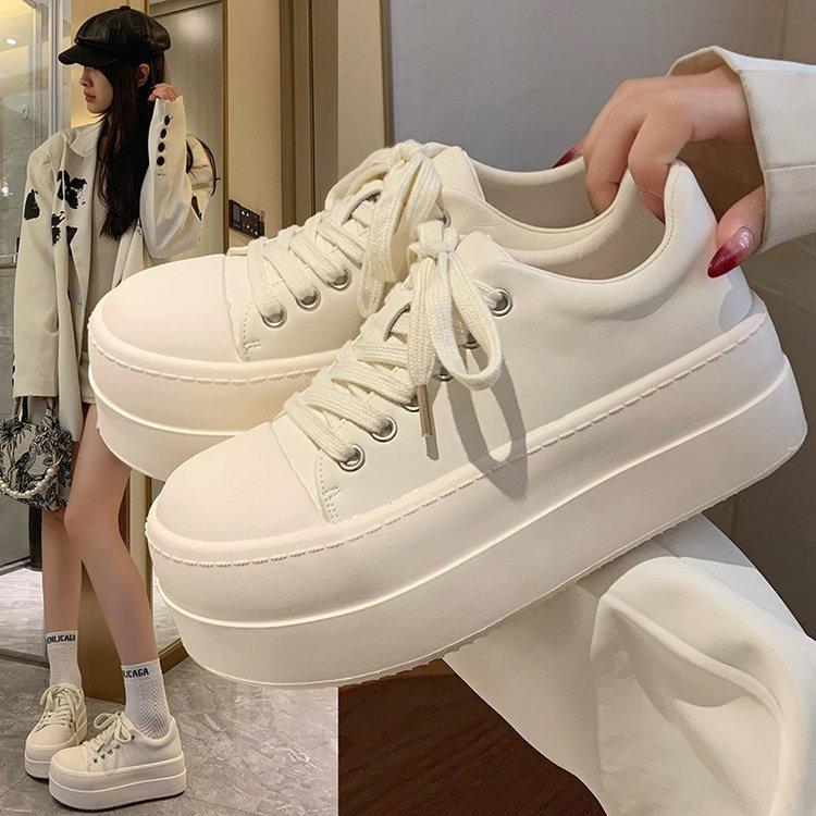 Sweet peach bubble thick-soled muffin little white shoes women's spring 2025 new leather surface height increase versatile sports and leisure shoes