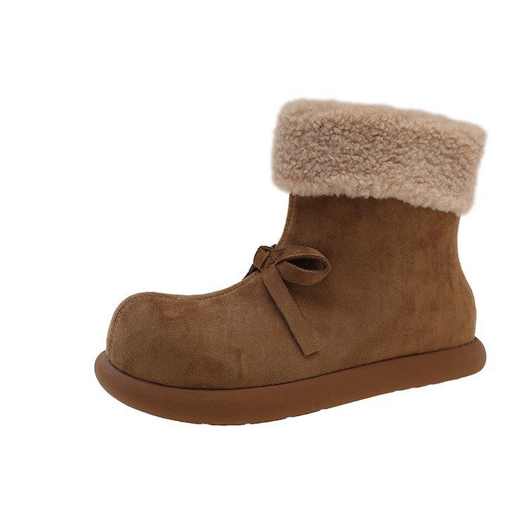 Версия из коровьей кожи~ флис с интегрированным мехом теплые шерстяные хлопковые ботинки женские ретро ветер короткие ботинки бант нескользящие зимние ботинки