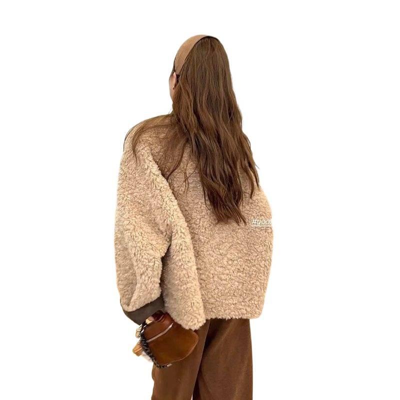 Короткое свободное ленивое пушистое пальто женское зимнее утолщенное теплое пальто из искусственной кожи повседневный топ с круглым вырезом