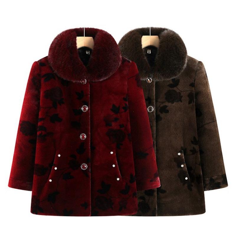Пальто для матери среднего возраста на осень и зиму, бархатное, одежда для бабушки, хлопковая одежда с меховым воротником, утепленная одежда для пожилых, зимняя одежда, одежда для пожилой женщины