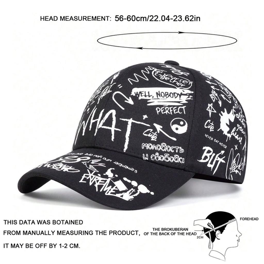Унисекс бейсболка WHAT с граффити - Регулируемая защита от солнца Всесезонный ретро-дизайн для улицы/путешествий