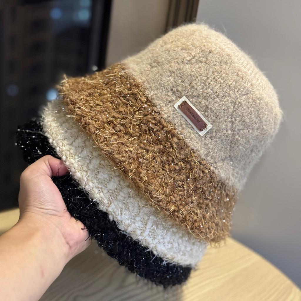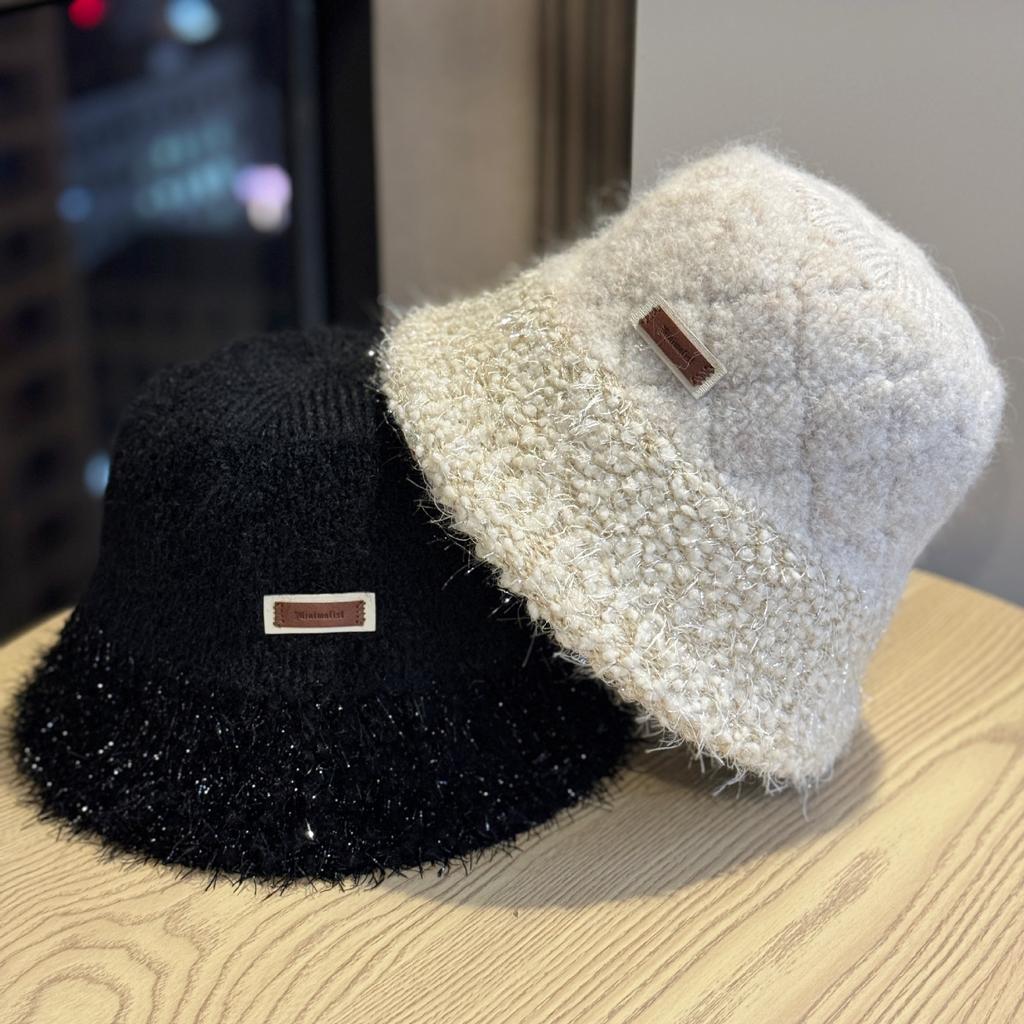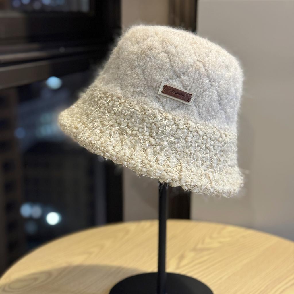 Новая плюшевая теплая шапка-рыбачка из яркого шелка для женщин на осень и зиму, корейская версия, универсальная, подчеркивающая лицо, маленькая шляпа-ведро с короткими полями