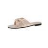 2025 лето новый корейская версия мода плоская подошва атласные прохладные тапочки женские с бантом для улицы праздничные пляжные тапочки женские