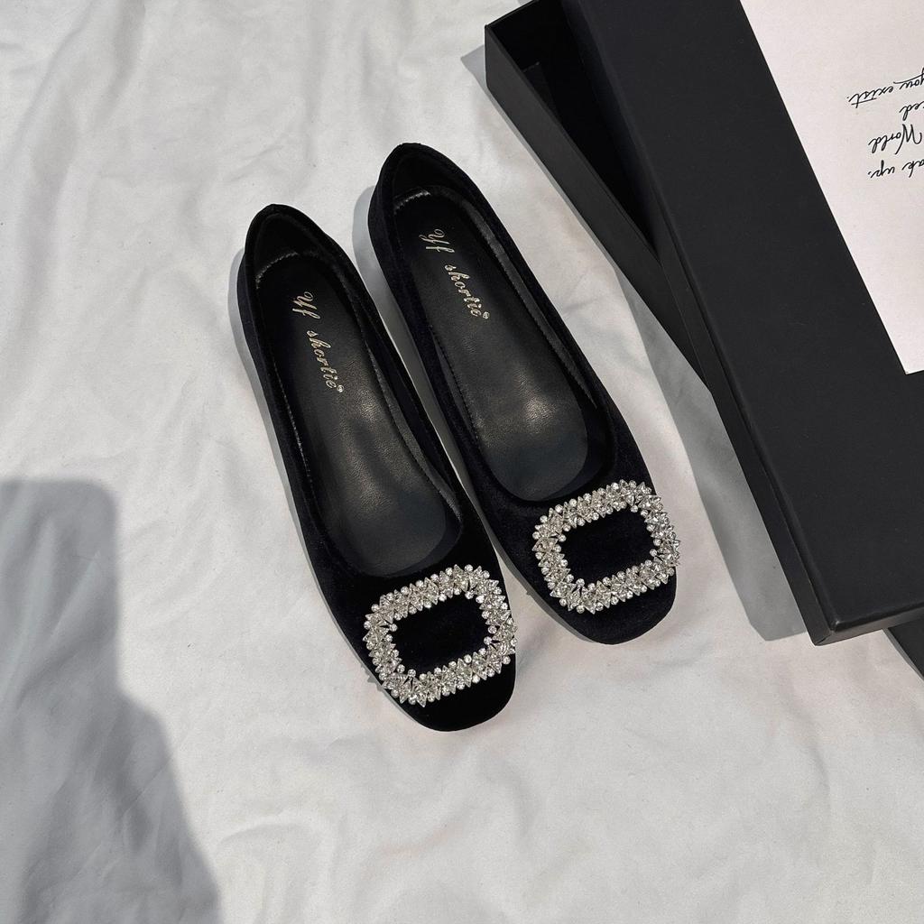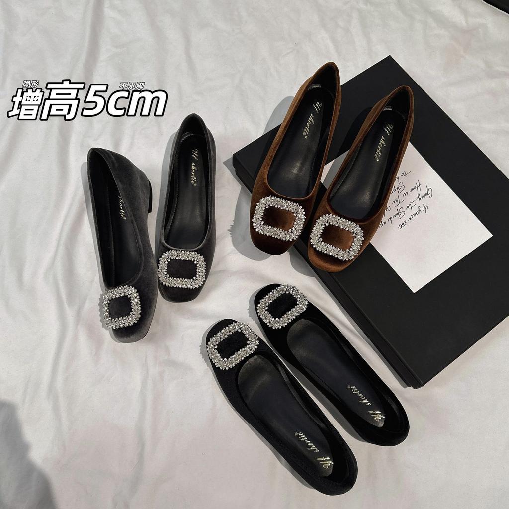 5 cm higher sparkling rhinestone suede high heels women's 2025 new high-end round head soft sole shallow mouth single shoes