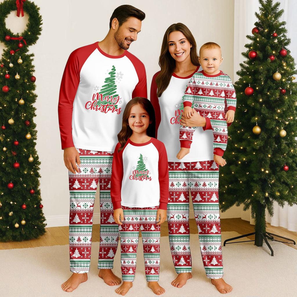 Рождественские принты Семейный комплект с длинными рукавами (топы+брюки) Семейные комплекты