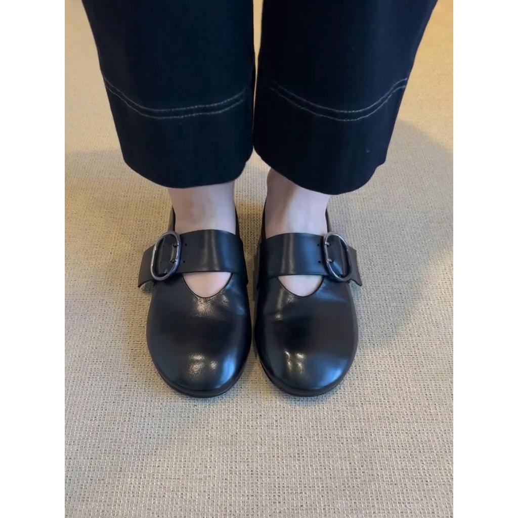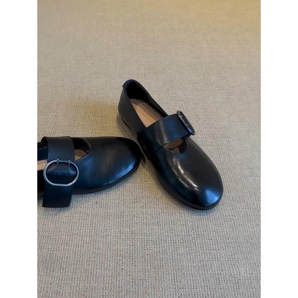 Вариант из овчины~ Туфли Мэри Джейн с круглой пряжкой на ремне и плоской подошвой, ретро-туфли, маленькие туфли-бабушки, балетки с неглубоким горлом для женщин
