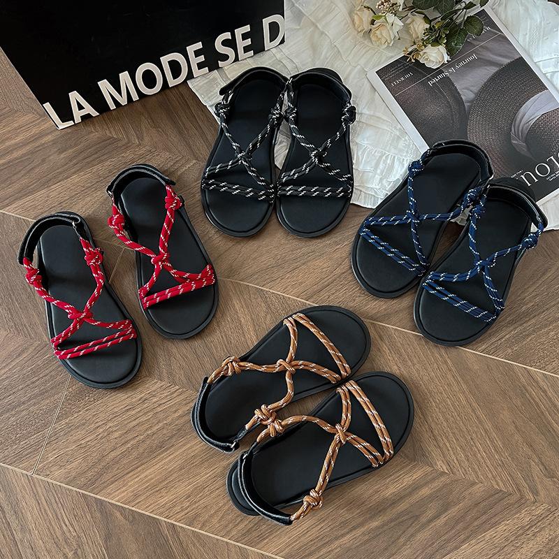 Версия из овчины~ miu домашние тапочки на веревке женская летняя одежда на липучке повседневная пляжная обувь с сандалиями
