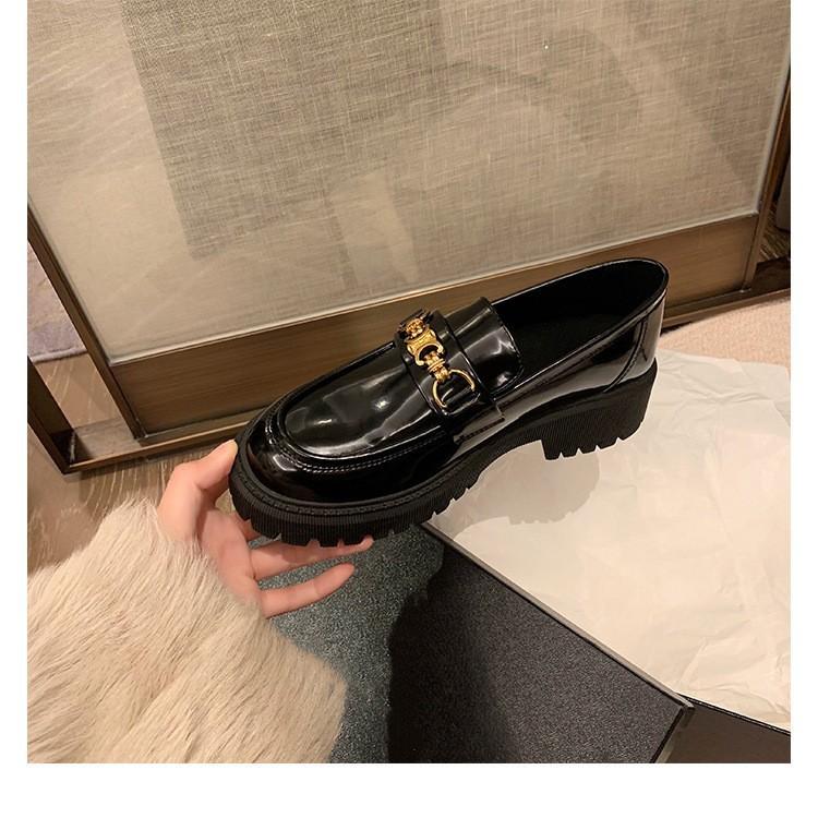 Версия из овчины~ Платформа с пряжкой Triumph, кожаные черные туфли-лодочки, женские туфли на толстом каблуке с маленькой золотой пряжкой, туфли-маффины, лоферы