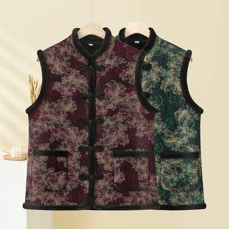 Китайский жилет теплый осенне-зимний бархатный утолщенный жилет жилет пальто для пожилой женщины зимний