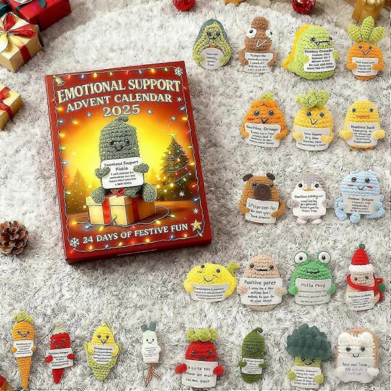 Адвент-календарь эмоциональной поддержки 2025 24-дневный обратный отсчет до Рождества с 24 акриловыми украшениями, персонажами в стиле вязания крючком, набором для снятия стресса, H