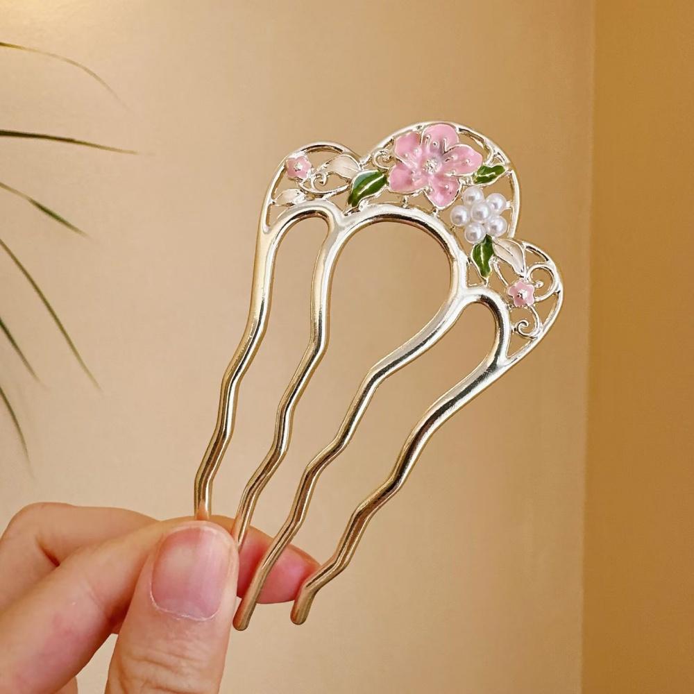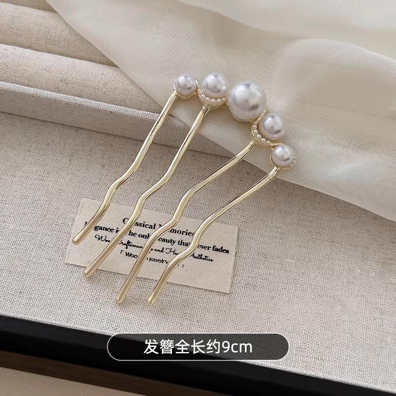 Французские ретро аксессуары для волос-пучка Элегантные гребни-заколки для волос с жемчужными цветами Женские повседневные U-образные шпильки Женская сплавная заколка для волос Подарок
