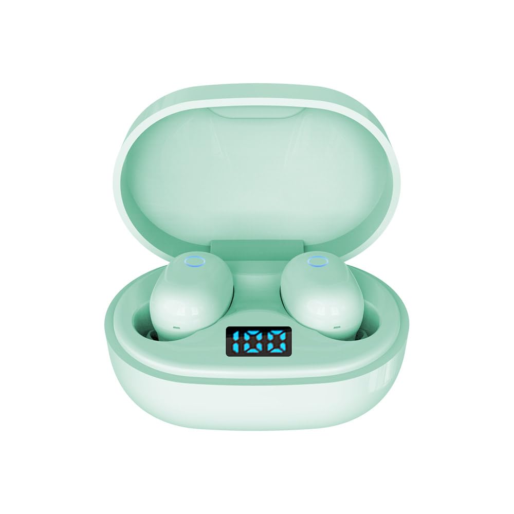Стильные беспроводные наушники Bluetooth 5.3, ультралегкие (3.5g), Мини-размер, Сверхмаленькие, Скрытые, Внутриканальные наушники, Звукоизоляция для сна, Гибкие, Удобные, Раздельные левый и правый наушники, Встроенный микрофон, Звонки в режиме громкой связи, Шумоподавление ENC, Автоматическое сопряжение, Светодиодный индикатор уровня заряда батареи, Быстрая зарядка Type-C, Совместимы с ПК, iPhone и Android (Мятно-зеленый)
