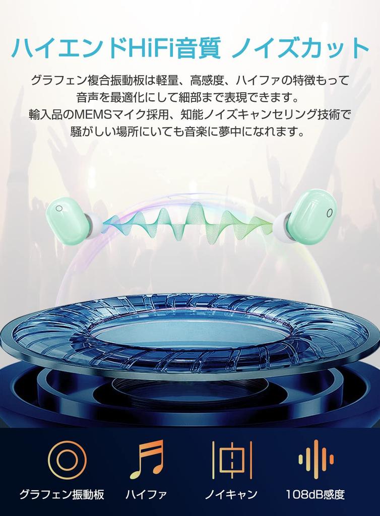 Bluetooth 5.2 Earbuds, True Wireless, Automatic Pairing, LED Battery Level Display, Charging Case Included, Hi-Fi Noise Cancelling, Ultra-Long Battery Life, Binaural, Separate Bluetooth Earbuds, Hands-Free Calling, Siri Compatible, Japanese Voice, PSE Certified, Compatible with iPhone, iPad, and Android