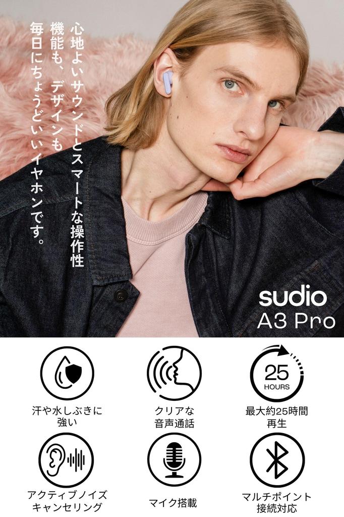 Беспроводные наушники SUDIO A3 Pro с микрофоном, совместимые с iOS и Android, с шумоподавлением ANC (Мягкий фиолетовый) В ухе (Bluetooth 5.4 / / / Водонепроницаемый)