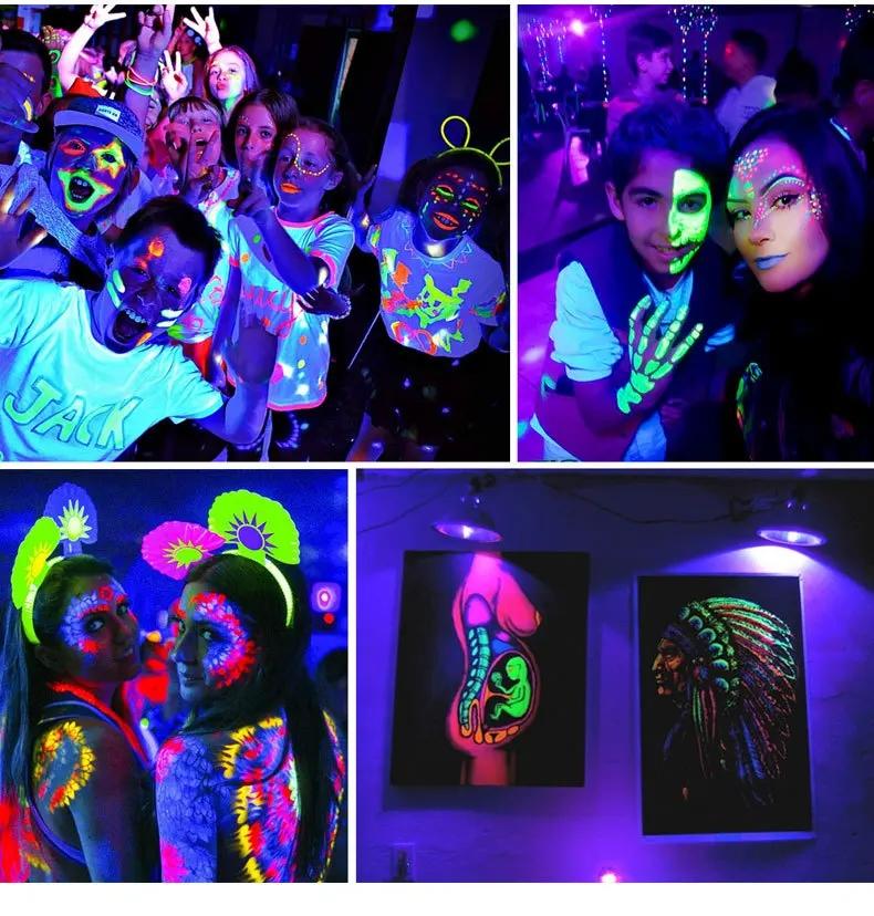 E27 УФ светодиодная лампа 9 Вт фиолетовая прозрачная лампочка для вечеринки, дома с привидениями, Хэллоуина, флуоресцентные атмосферные декоративные огни