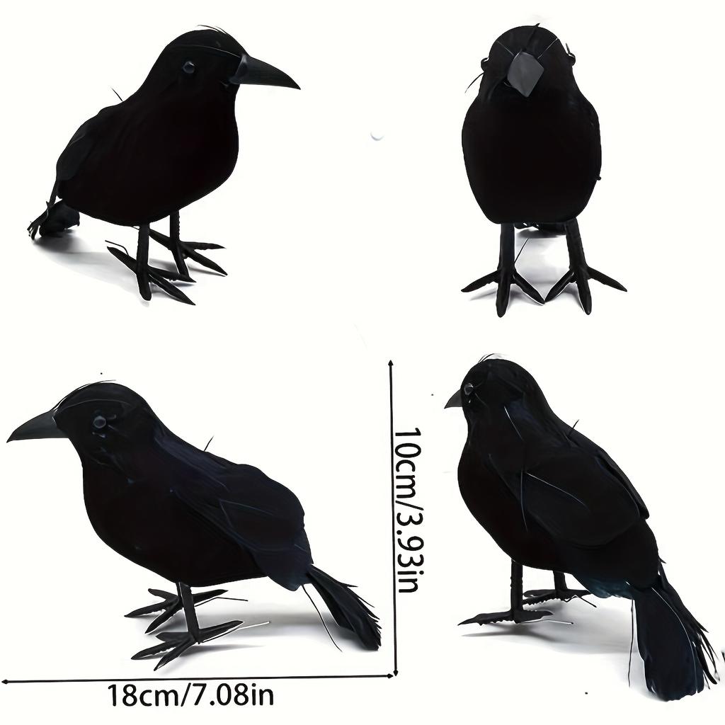 Набор из 3 реалистичных черных воронов с реалистичными искусственными перьями | Аутентичный винтажный стиль, реквизит для декора вечеринки ужасов на Хэллоуин