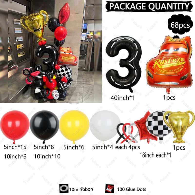 Набор из 68 латексных шаров серии мультяшных машинок «Молния Маккуин» красный желтый черный 40-дюймовый фольгированный шар с цифрой, сувениры для мальчиков на день рождения