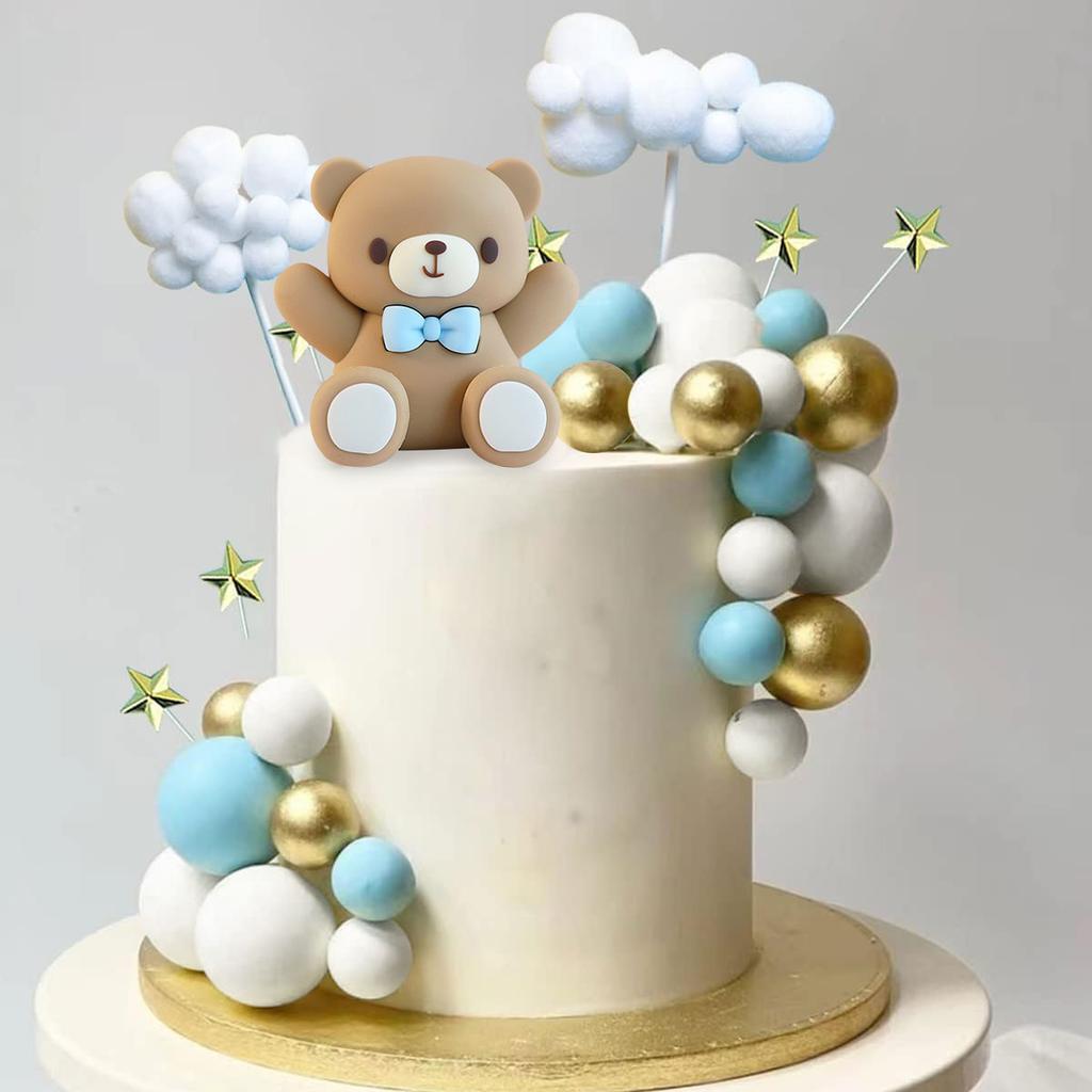 Набор топперов для торта на детский праздник - 33 шт. - Украшения в виде голубого мишки и звездных облаков для вечеринки по случаю дня рождения, декор для торта на вечеринку по определению пола