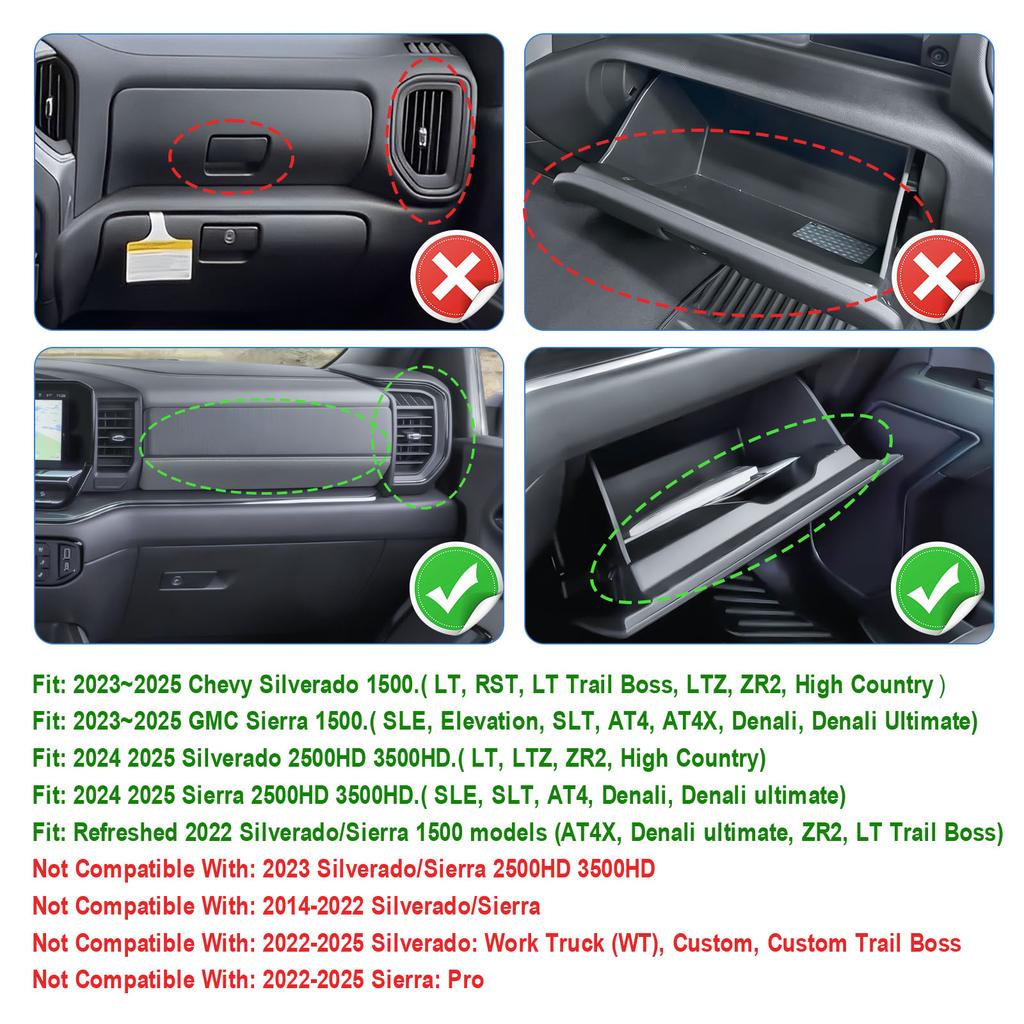 Glove Storage Organizer Dividers Tray for 2025 2025 Chevy Silverado/GMC Sierra 2500HD 3500HD Center Console Dividers Accessories
