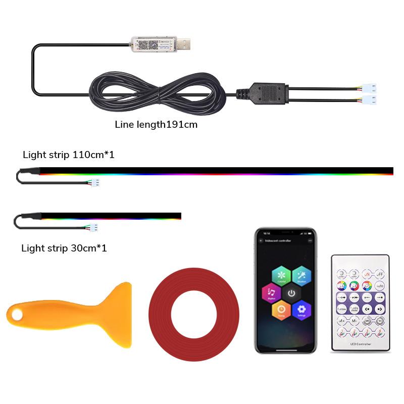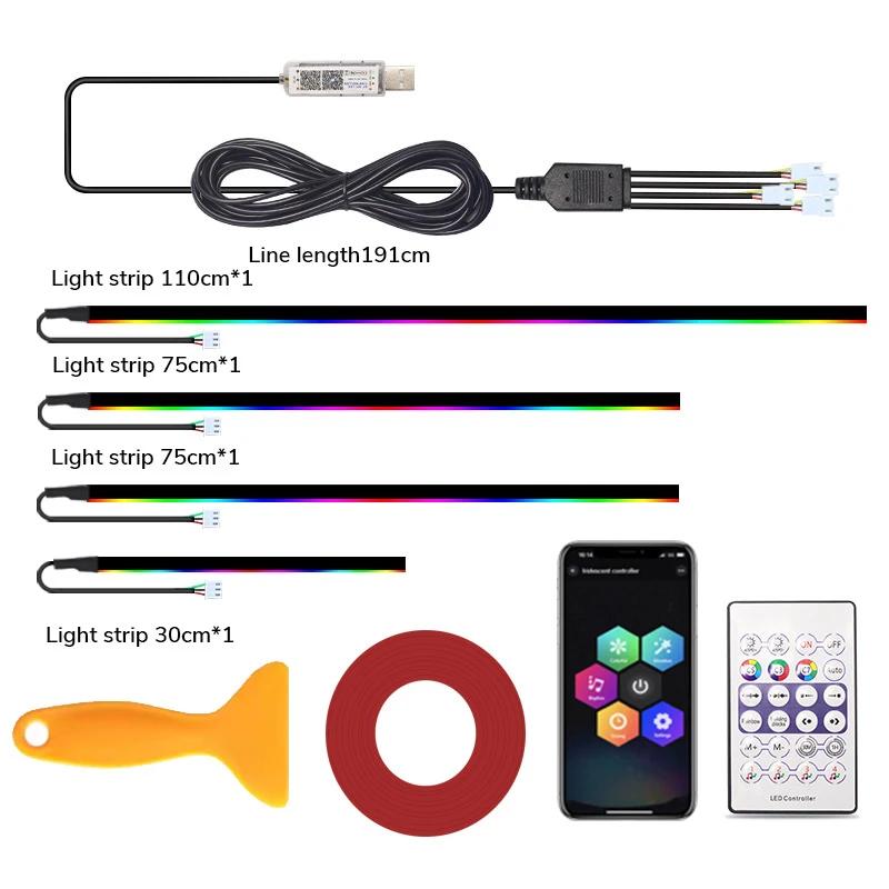 Универсальные автомобильные атмосферные огни LED Внутренний RGB Симфонический атмосферный светильник USB Управление приложением и пультом ДУ Акриловая лента