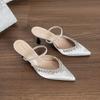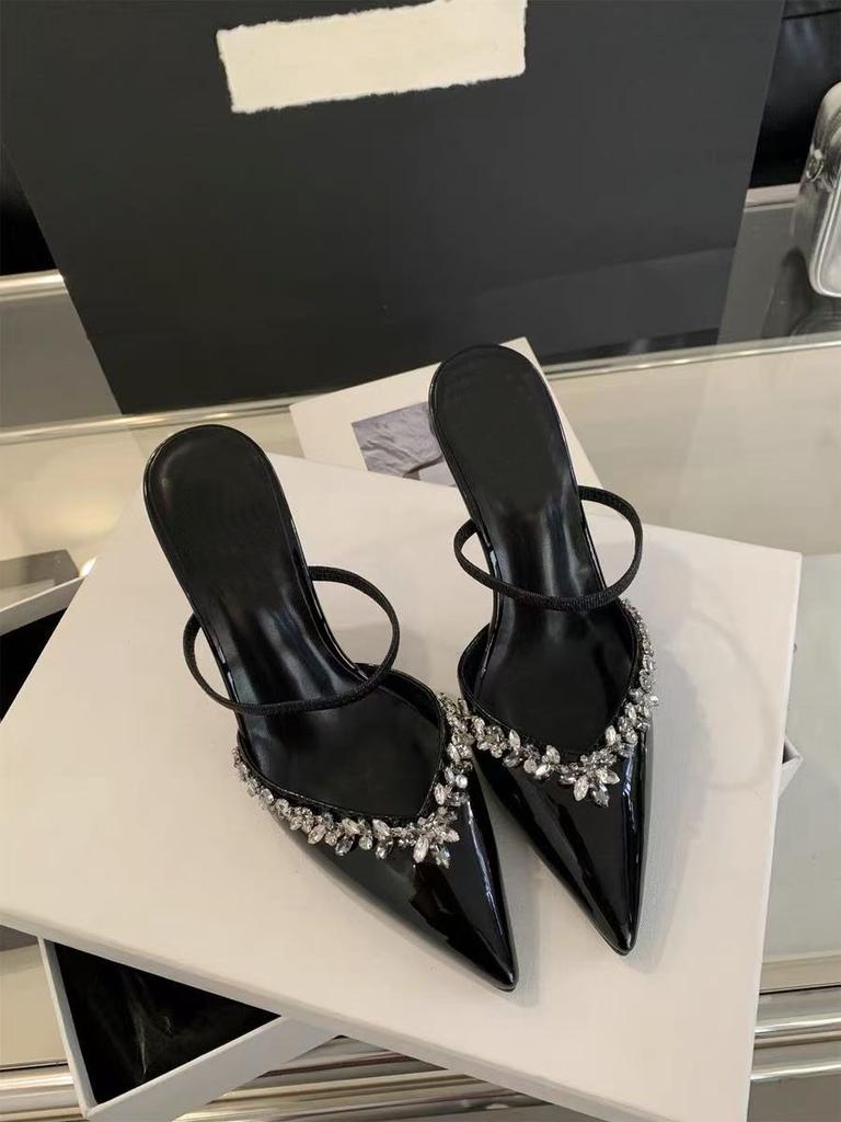Тонкий каблук острый носок французский ремешок на одно слово тонкие туфли-лодочки новые высококлассные банкетные туфли с полным бриллиантовым покрытием туфли на высоком каблуке женские
