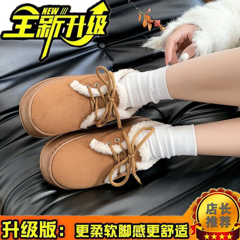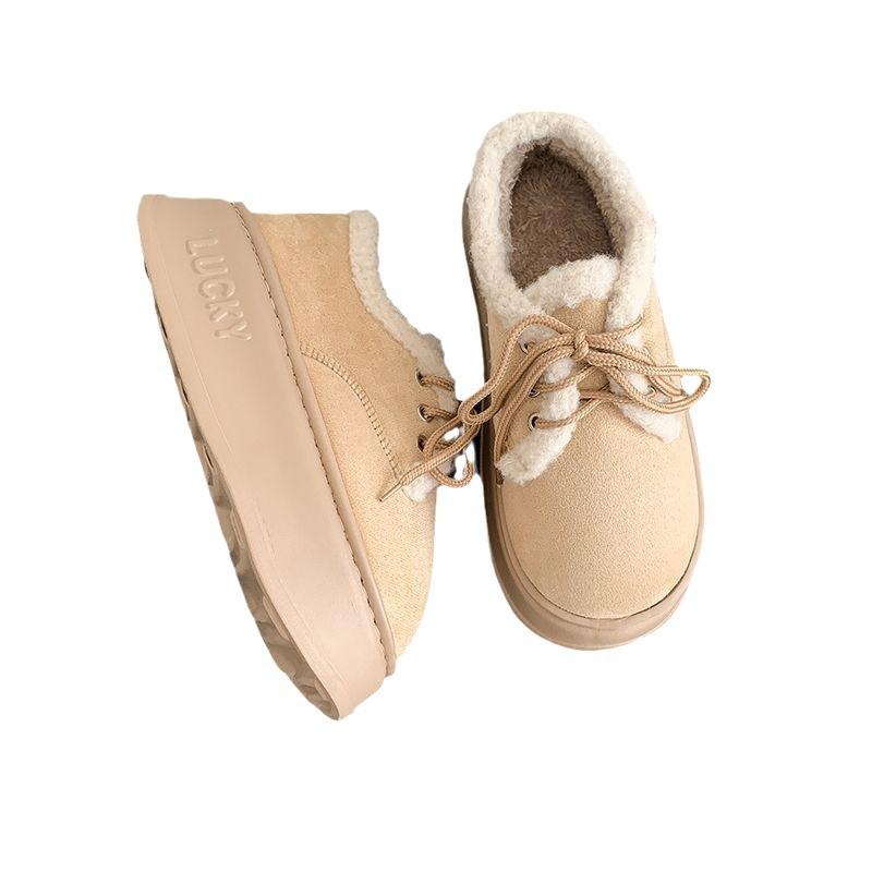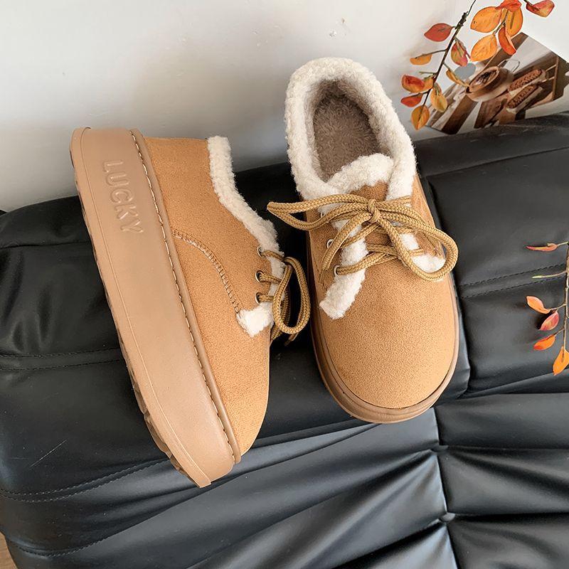 Бархатные хлопковые туфли женские зимние новые утолщенные теплые нескользящие сноубутсы женские на платформе обувь-хлебцы модные