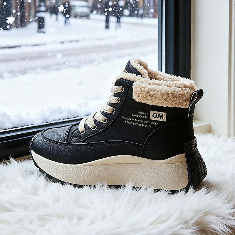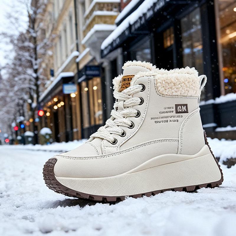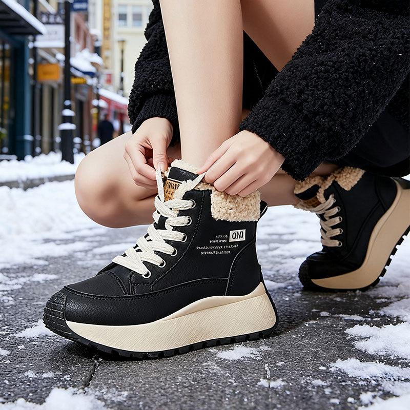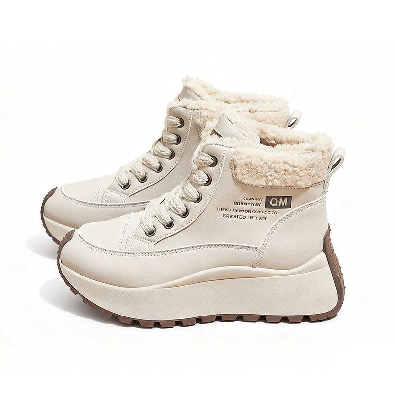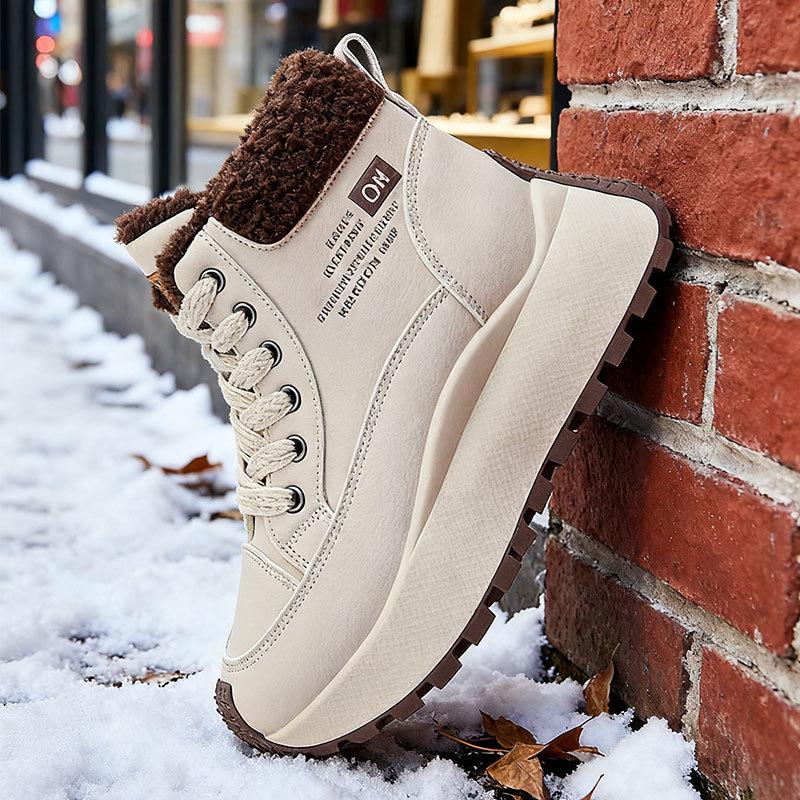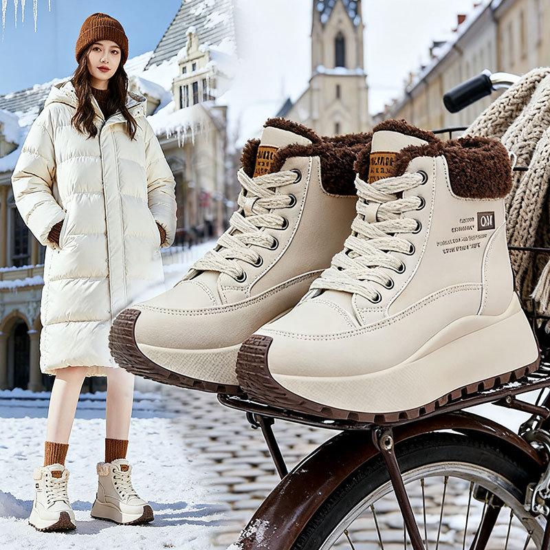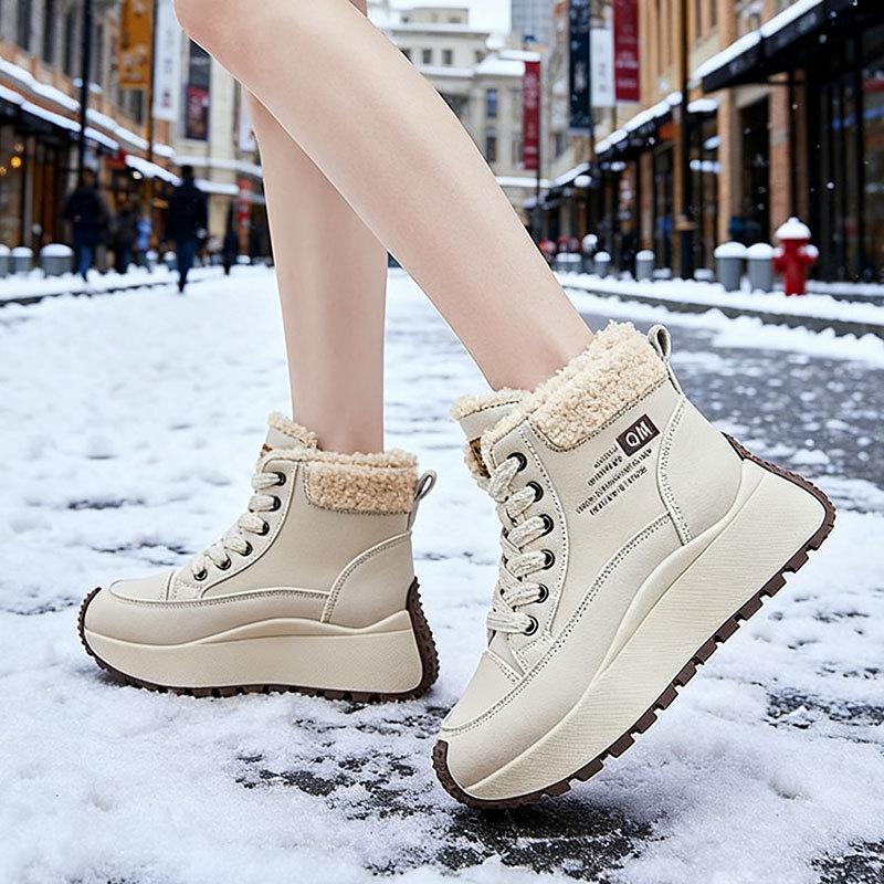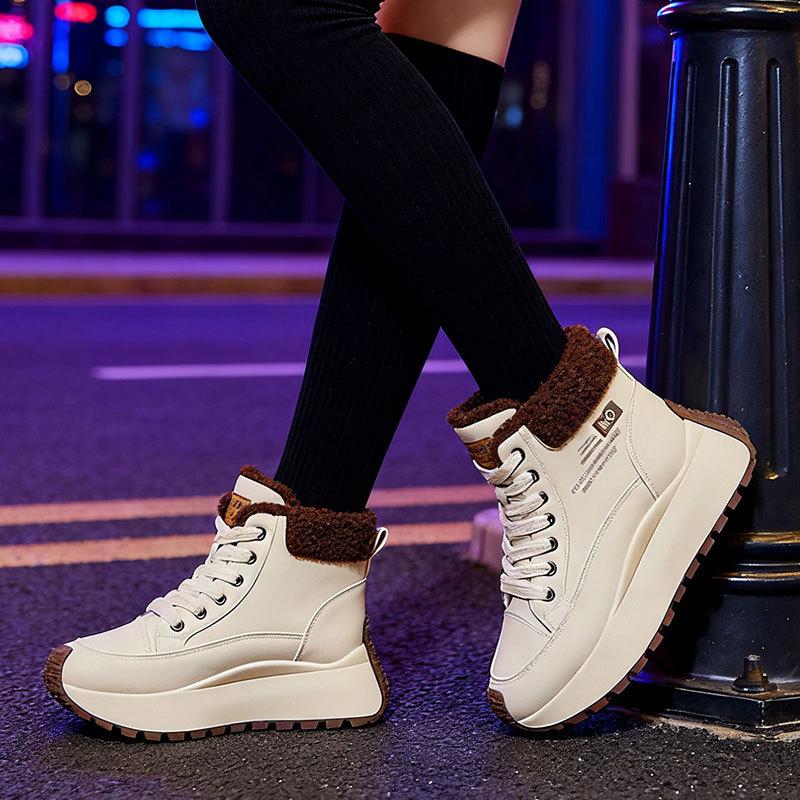 Женские кроссовки на толстой подошве с высоким верхом, утепленные флисом зимние ботинки, новая зимняя пушистая хлопковая обувь, теплая и увеличивающая рост спортивная обувь