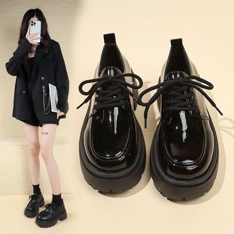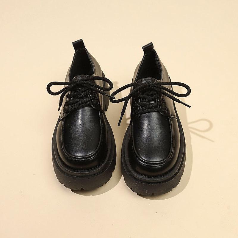 Платформенные маленькие кожаные туфли женские осенние новые ретро британский стиль на высокой подошве черные в стиле колледжа на шнуровке