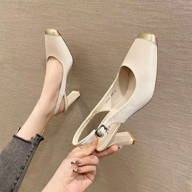 Французские сандалии на высоком каблуке с квадратным носком, женские, на толстом каблуке, новые весенне-летние, для通勤, мягкая кожа, с открытым носком — купить товар онлайн с бесплатной доставкой по всему миру!