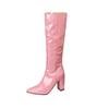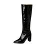 Высокие сапоги острый носок лакированная кожа толстый каблук высокий каблук боковая молния сапоги до колена клубная обувь для танцевальных выступлений