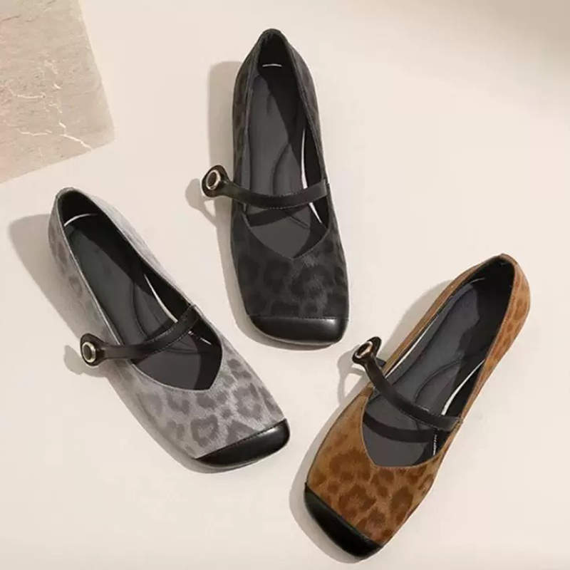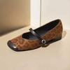 Французские туфли с квадратным носком, плоской подошвой и неглубоким вырезом, новые весенне-осенние туфли на низком каблуке с леопардовым принтом и ремешком с пряжкой на одно слово