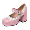 Женские туфли-лодочки на толстой подошве и очень высоком каблуке с квадратным носком из лакированной кожи, Брок, горящие цветы, заклинающие весну и осень, Лолита