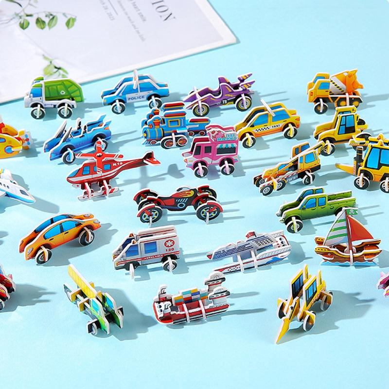 30Pcs 3D Cartoon Car Paper Jigsaw Puzzle Construction Truck Toys Kids Birthday Party Favors Gift for Guests Goodie Pinata Filler — купить товар онлайн с бесплатной доставкой по всему миру!